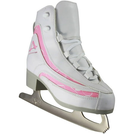 American Girls' Soft Boot Ice Skates: Recreational softboot figure skate with pink trim designFully lined upper with cushy foam paddingLace loops for quick lacingMulti-layer ankle supportHollow ground-nickel plated steel blade