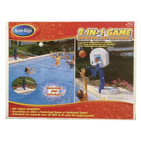 The two most popular pool games in one! This basketball and volleyball combination includes two heavy duty bases and arms for superior durability, a volleyball net that spans over 24 feet and a pro style basketball and volleyball