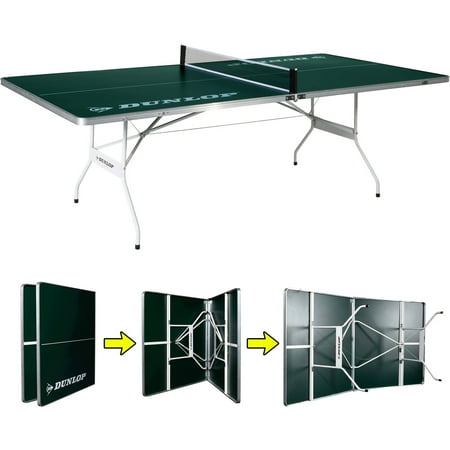 Dunlop 2-Piece Easy-Fold Outdoor Table Tennis Table: Outdoor table tennis table with durable aluminum frame base with waterproof playfieldSturdy 0.875" steel leg construction for durabilityEasily folds for simple storage and transportNo assembly requiredAccessories included: 1 set of posts and netAssembled product dimensions: 96"L x 48"W x 30"HFolded product dimensions: 48.5"L x 48.25"W x 2.75"HDunlop 2-piece folding table tennis table comes with a 90-day limited manufacturer's warrantyModel# 1642129Ideal for both outdoor and indoor playCompact and foldable constructionEnjoy playing with family and friends at home