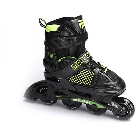 Mongoose Boys' In-Line Skates, Large: Mongoose skates are adjustable for sizes 5-8ABEC-5 bearings64mm indoor/outdoor urethane wheelsLocking buckles with power straps